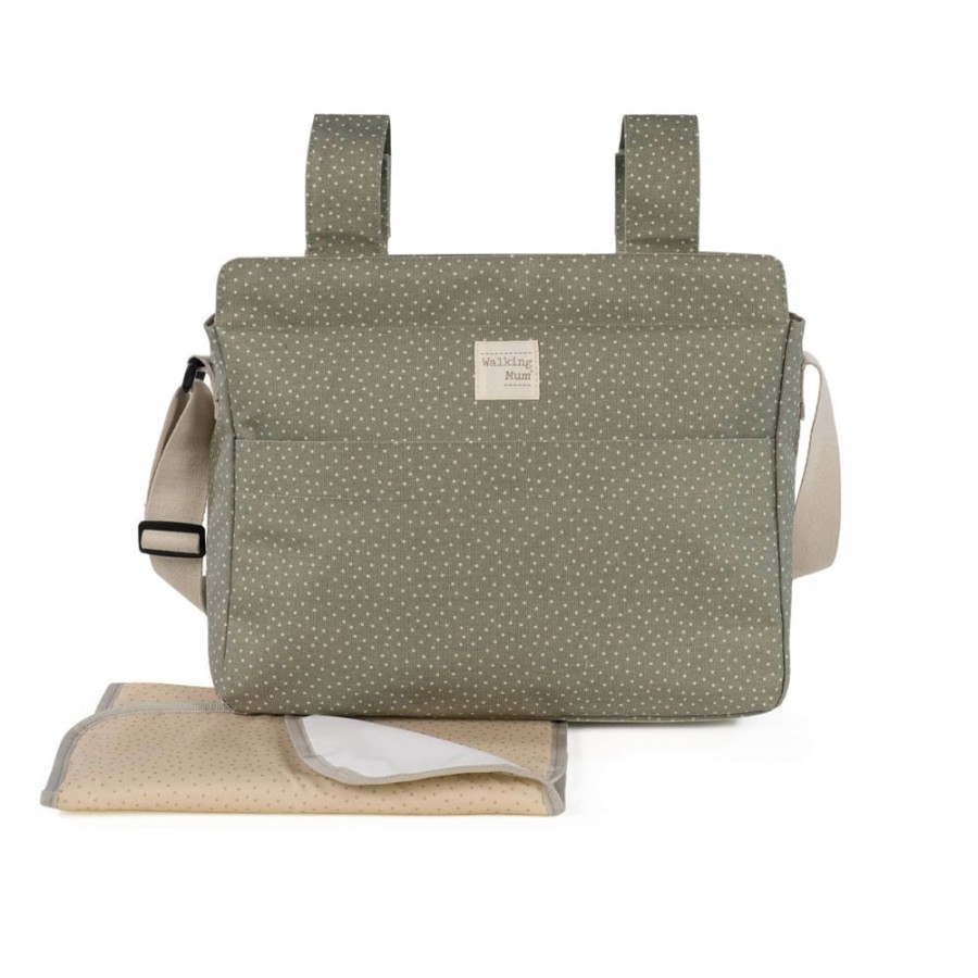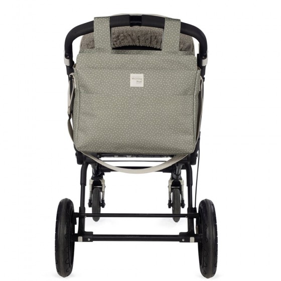 - La bolsa tiene un sistema universal de fijación, con 2 asas cortas que facilita la colocación en la silla de paseo. También incorpora una asa larga para poder colgarla en el hombro.