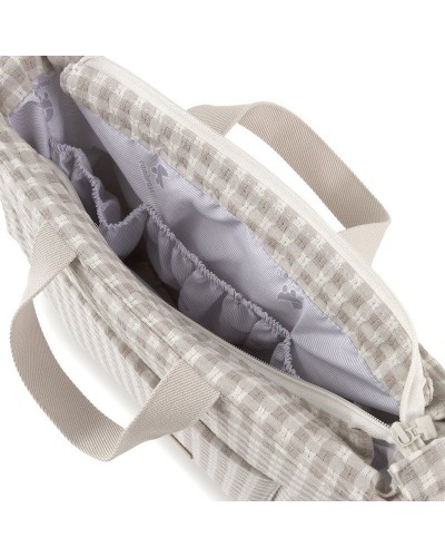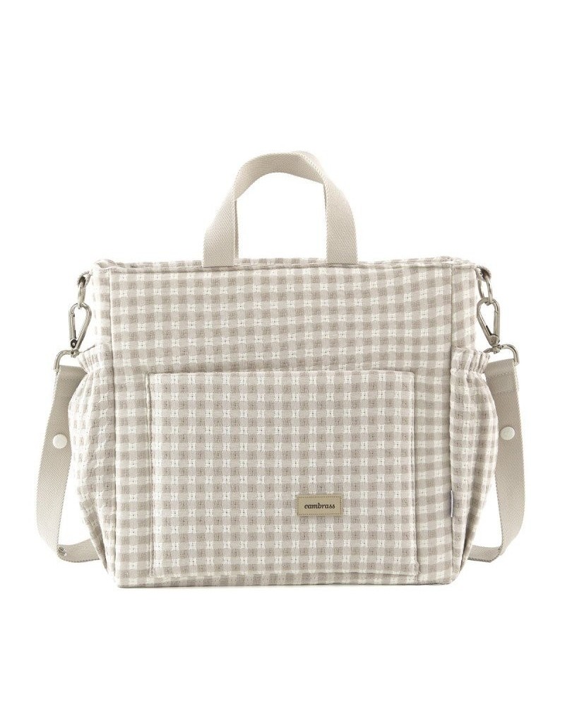 El Bolso Maternal Pack de Cambrass de gran amplitud con capacidad para guardar todo lo que necesitas para tu bebe. Su sistema de asas cortas lo hace útil tanto como bolso de mano o maletín así como de bandolera o incluso para el carro, ya que el asa larga dispone de clips para poder colgar del cochecito. Tanto el tejido exterior como el interior (resinado) con el que está confeccionado el bolso cuentan con un acabado impermeable que sumado a su base rígida aporta estabilidad evitando que pierda su forma tanto lleno como vacío e incluso después del lavado. Este bolso cuenta con prácticos bolsillos interiores y exteriores para una perfecta organización de los accesorios. El cierre del bolso es con cremallera YKK de larga duración.