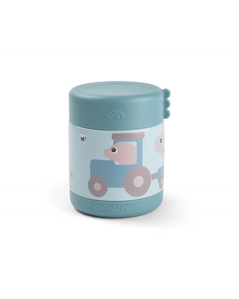 El termo para alimentos sólidos o purés de Done by Deer es de acero inoxidable y mantiene la comida caliente o fría hasta por 6 horas, con un cambio gradual de temperatura con el tiempo.