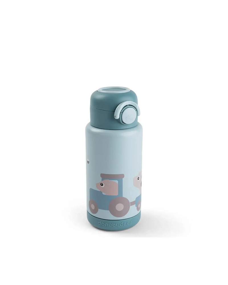 La nueva botella térmica de Done by Deer está hecha de acero inoxidable y mantiene la bebida fría o caliente hasta 6 horas. Es muy cómoda ya que tiene una gran apertura para beber, cierre mediante botón y cierre de seguridad con sellado a prueba de fugas. Su base es de silicona para proteger contra caídas y tiene un enganche en la parte superior para poder colgar en la mochila.
