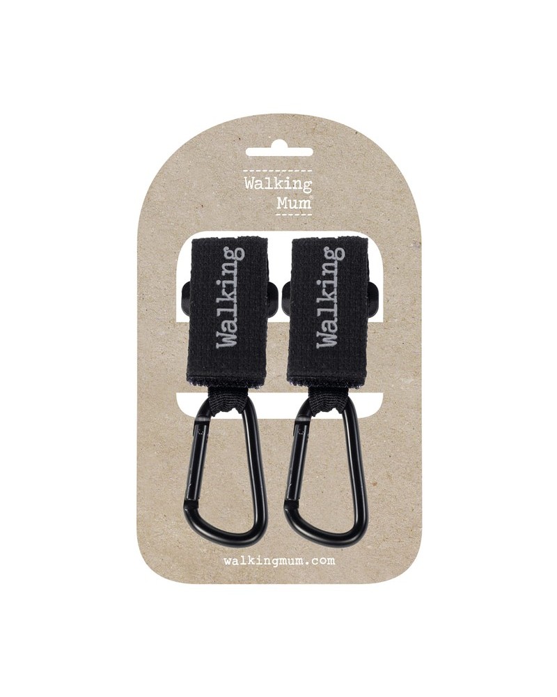 Set de 2 ganchos para cochecito Eco Mum Black. Gancho de metal. Muy facil de colocar gracias a sus tiras con velcro. Perfecto para colgar la bolsa de canastilla o cualquier bolsa que necesites llevar en el cochecito. Soporta hasta 5 kgs de peso. Universal.
