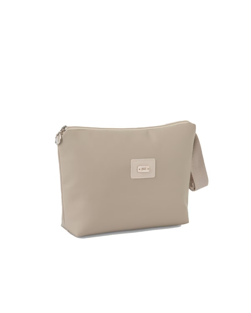 Neceser de polipiel con cierre mediante cremallera y con asa para colgar.