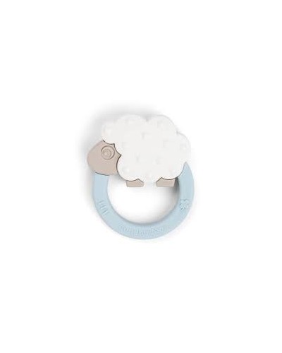 Mordedor de la dulce ovejita Sheepy de la colección Tiny Farm de Done by Deer. Es fácil de sujetar, tiene diferentes formas y texturas para estimular y aliviar el dolor de sus encías.