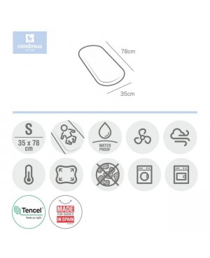 La sábana ajustable confeccionada con fibras de TENCEL ™ es impermeable y transpirable (para capazo o carro) de Cambrass, funciona como una práctica bajera. Fabricado en España. Por Cambrass.