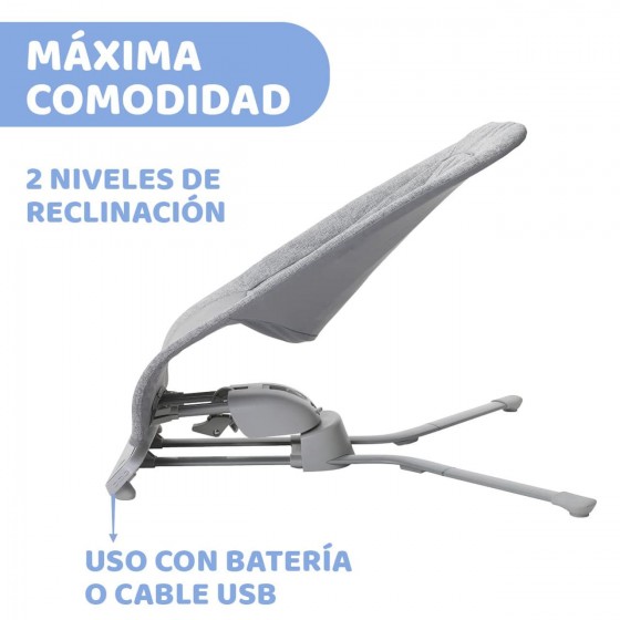 El asiento de la hamaca sujeta correctamente al bebé y, gracias a las dos posiciones reclinables del respaldo, garantiza el confort adecuado en cada fase de crecimiento.